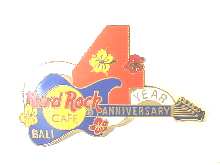 さて今回はアニバーサリーピンのお話なんですが、ロンドンのHRCで1986年にスタッフ用に作られた15周年ピン等をのぞくと、一般発売された○○周年ピンというのは、1990年に作られた我らが日本のHRC東京7周年ピンが世界初なんですよ。 その1年後にはシンガポールのHRCで1周年ピンというのも出ましたが、こちらもやはりスタッフ用の非売品だったし、東京のモノは今からもう10年も前に発売されたという事と、その頃はまだ限定ピンというもの自体が少なかったという理由もあって、今では他のピンよりもちょっとレアみたいね。 それからというもの、毎年HRC東京では7月の記念日にアニバーサリーピンを出しているので、どうしてもシリーズで集めたくなるコレクター達の心理をうまくついた東京店ったら、ホントに商売上手(笑)! でも最近の新しいピンの発売ラッシュは、私達コレクターには本当にツライよね。 いくら記念日好きと言われる日本でも、サーフボードピンやテディベアピンまで出さなくたっていいのに・・・、もう許して。 おそらく来年の今頃は、みーんな孫の日ピンをGETするために大忙しなんでしょうねえ(笑)。