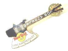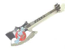 例えば、“アーティスト系”。 私の周りには、1ヶ月前にHRC東京でシークレットライブを行った、ザックワイルドのモデルのピンを作って欲しい!という声もたくさんありました。 新しくアーティストモデルのピンを作るのは、まず本人の許可をとって、デザインを決めて・・・等、いろいろとクリアしなければならないハードルもあるでしょうが、アーティストに、「貴方のピンを作らせていただきたい。」と許可を申請するよりも、ピンコレクションに理解のあるマネージャーさん等いらっしゃいましたら、本人が来店した時に軽く肩など叩きながら、「うちの店で、貴方のギターのデザインのピンなんかも作れるんですよ。 サンプル(プロトタイプ)が出来上がったらすぐにお送りしましょう!」と話を持ちかければ、きっと 「Oh、that sounds super!」 ってな具合に話は進むはず! うひょー、私ってば冴えてる〜(ダメかね)。 その他にもHRC東京と大阪で販売されていた、ランディローズの水玉模様(ポルカドット)フライングVギター等も人気で、再販を待ち望む声もたくさん上がっています。 そうそう、ファンの声を大切にしてくださいね。 今までにシティーギターのデザインをその都市のイベントピンに流用するという試みは、どのHRCもやった事がないので、日本のピンをデザインしている従業員の皆さん、今がチャンスですよ! この白と黒のフライングVギターやHRC東京の神風テレキャスター等、クリスマスピンのデザインに取り入れるとピッタリだと思うんだけどなあ(別にいいです)。 まあこれは例えばの話だけど、私の希望はカッコいいピン、そこんとこよろしく(笑)。
