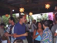 パーティーと言ってもね、特別なイベントが行われるワケではありません。 翌日に控えた本番を前に、参加者みんなの顔見世のために企画された飲み会のようなもの。 食事は食べ放題だから、みんなホントに大満足♪ そして次から次へと顔見知りのコレクターが集まってくるのです。 オレはいつものように、山のような巨漢のベネズエラ人と一緒にテーブルにつきました。 彼を見たTAKちゃんは、「うわ、何を食ったらこんなに大きくなるんだろ?」などと心配しておりましたが、そう言うアンタも相当デッカイよ(笑)。 2人の共通の知り合いと昼間に会ったアメリカ人たちも一緒にドリトスチップをつまみながら、 無理してビールなんぞ飲んじゃってね。 バナナ味のドリンクがなかったのがちょっと残念だったかな。